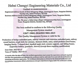 Hebei Chengyi Engineering Materials Co., Ltd. has many years of manufacturing experience, is loacted in the beautiful port city – Handan, the traffic is very convenient. With advanced equipment, senior professional and technical personnel, and advanced management system, has developed as one of the larger local standard parts manufacturers,strong technical force, enjoy higher reputation in there industry.