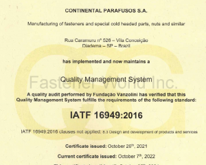 The history of Continental Parafusos S.A. began during the supply difficulties of 2nd World War, producing small screws for the internal needs of the mother company that at that time produced timer switches, capacitors, electric hardware, harnesses and related products for the emerging Brazilian market. Initially, as a department of the mother company, we had to design and manufacture the machines and tooling to produce the fasteners. In 1974, the fastener production department of the mother company has developed enough power to become be an independent fastener company, since it was already supplying to automotive, home appliances and other industries, giving rise to Continental Parafusos S.A.