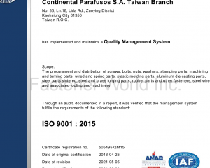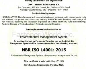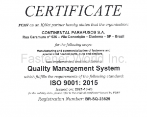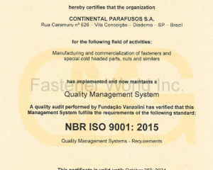 Since 1974, Continental Parafusos S.A. has been producing a comprehensive portfolio of high-quality industrial fasteners for nearly 50 years in Brazil, with the total built area of 50,387m2 and total land area of 103,711m2. We are specialized in producing screws, bolts, nuts, rivets and special parts in carbon steel/stainless steel/copper/aluminium in sizes from Ø2mm up to Ø24mm and length from about 3mm up to 180mm in order to serve customer’s high- speed assembly lines such as automotive, home appliances, construction, electronics and other industries.