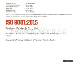 FRATOM FASTECH CO., LTD. ISO 9001:2015 CERTIFICATION