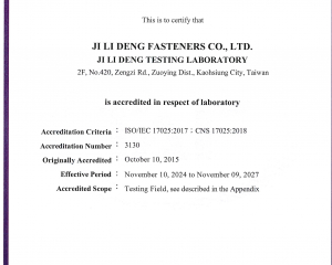 Ji Li Deng Fastener supplies Customized Parts, stamping, plastic fastener, CNC, etc. at competitive price. We are the ISO 9001 Cert supplier. Right now, in order to strengthen the expertise in fasteners inspection & accuracy of statistic, we are under TAF Accreditation and we expect to get this Accreditation by the end of 2015. Moreover, we focus on treating customers with great integrity and honesty. To fulfill your requirement is our mission. Therefore, trust and cooperate with us will be your best intelligent choice!